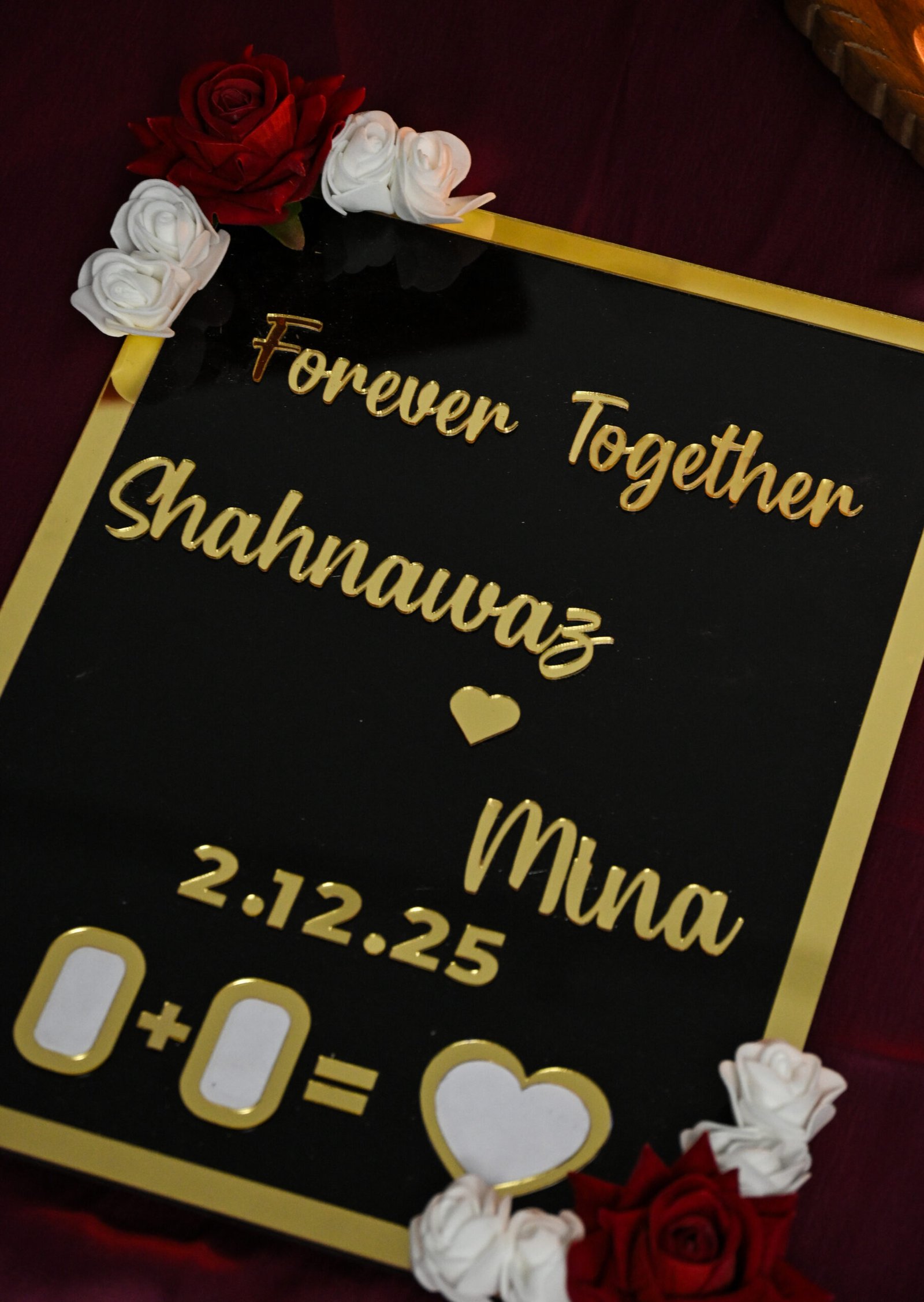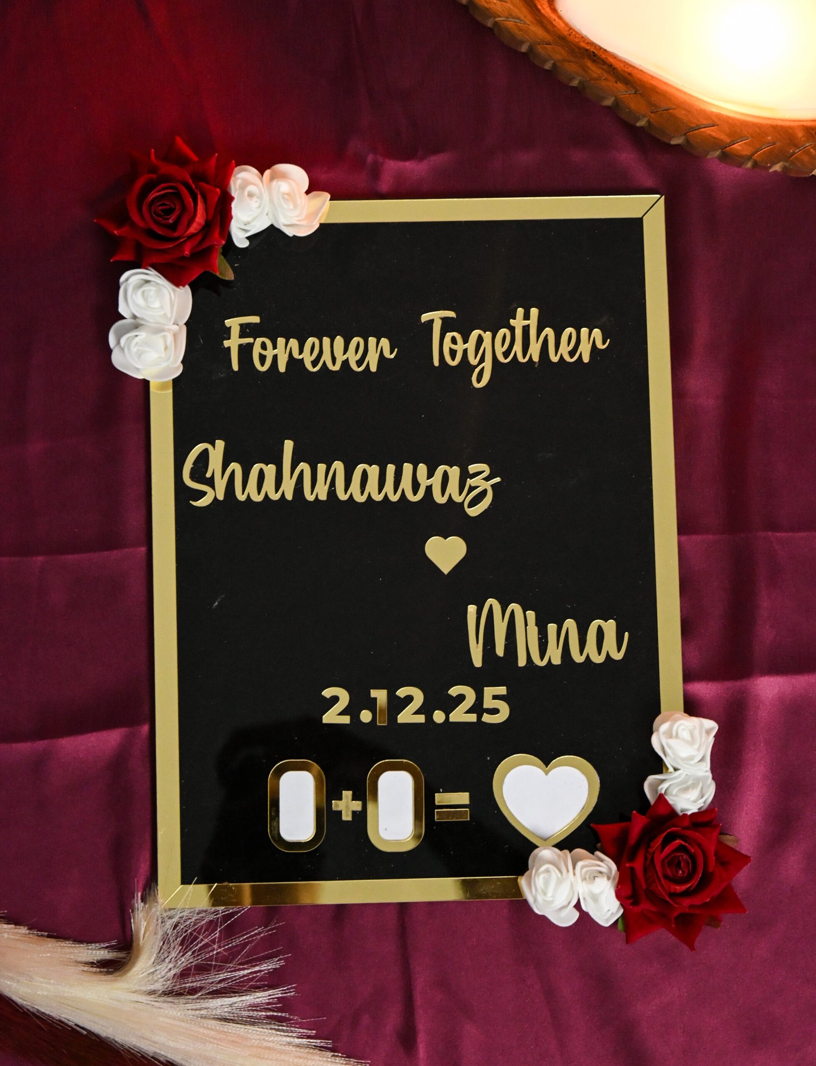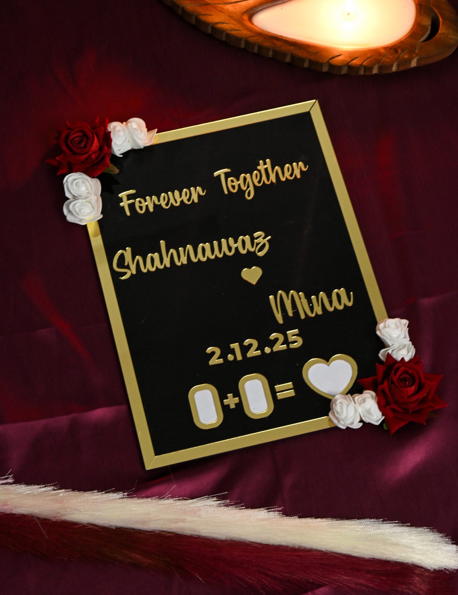 Your wedding day is undoubtedly one of the most memorable days of your life. It is the day you and your partner become one, stepping into a future filled with togetherness. Every detail of this journey should reflect the bond you share, and the Thumb Board does exactly that. This personalized piece showcases the thumb impressions of the bride and groom, framed elegantly to highlight the strength and beauty of your connection. It is a heartfelt tribute to the everlasting promise you make to each other.