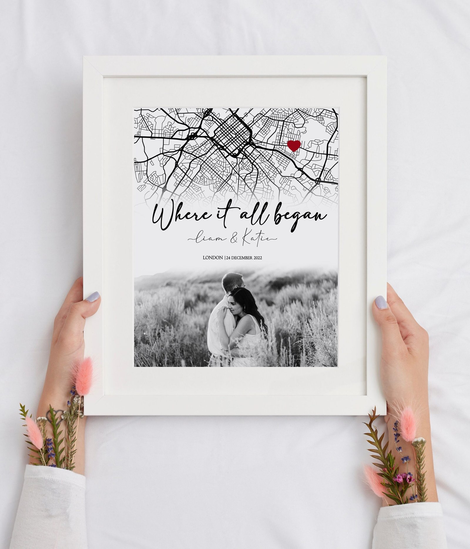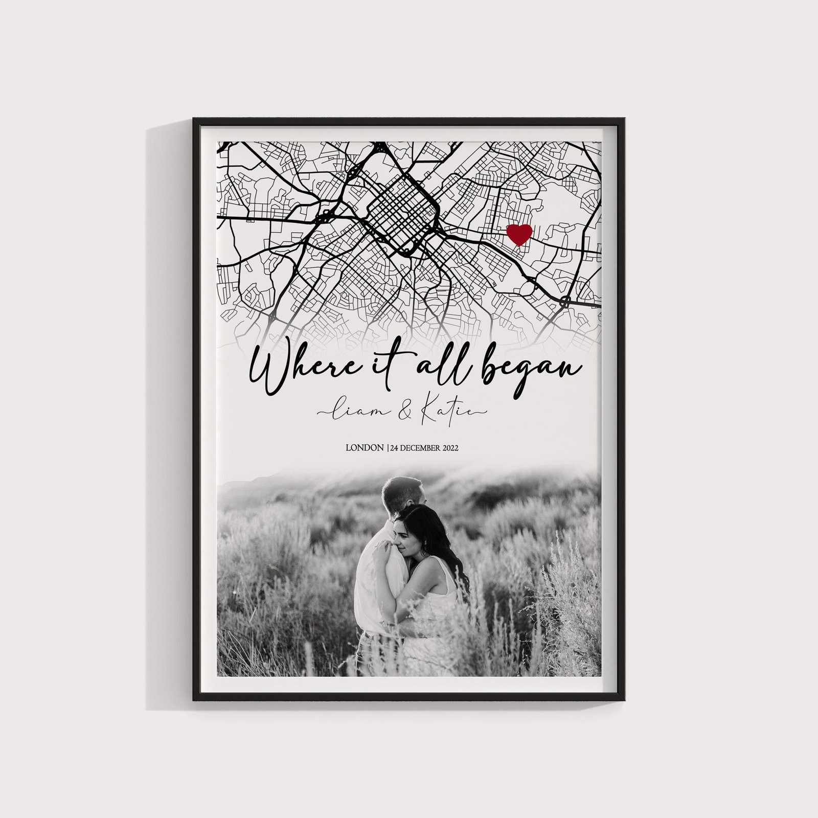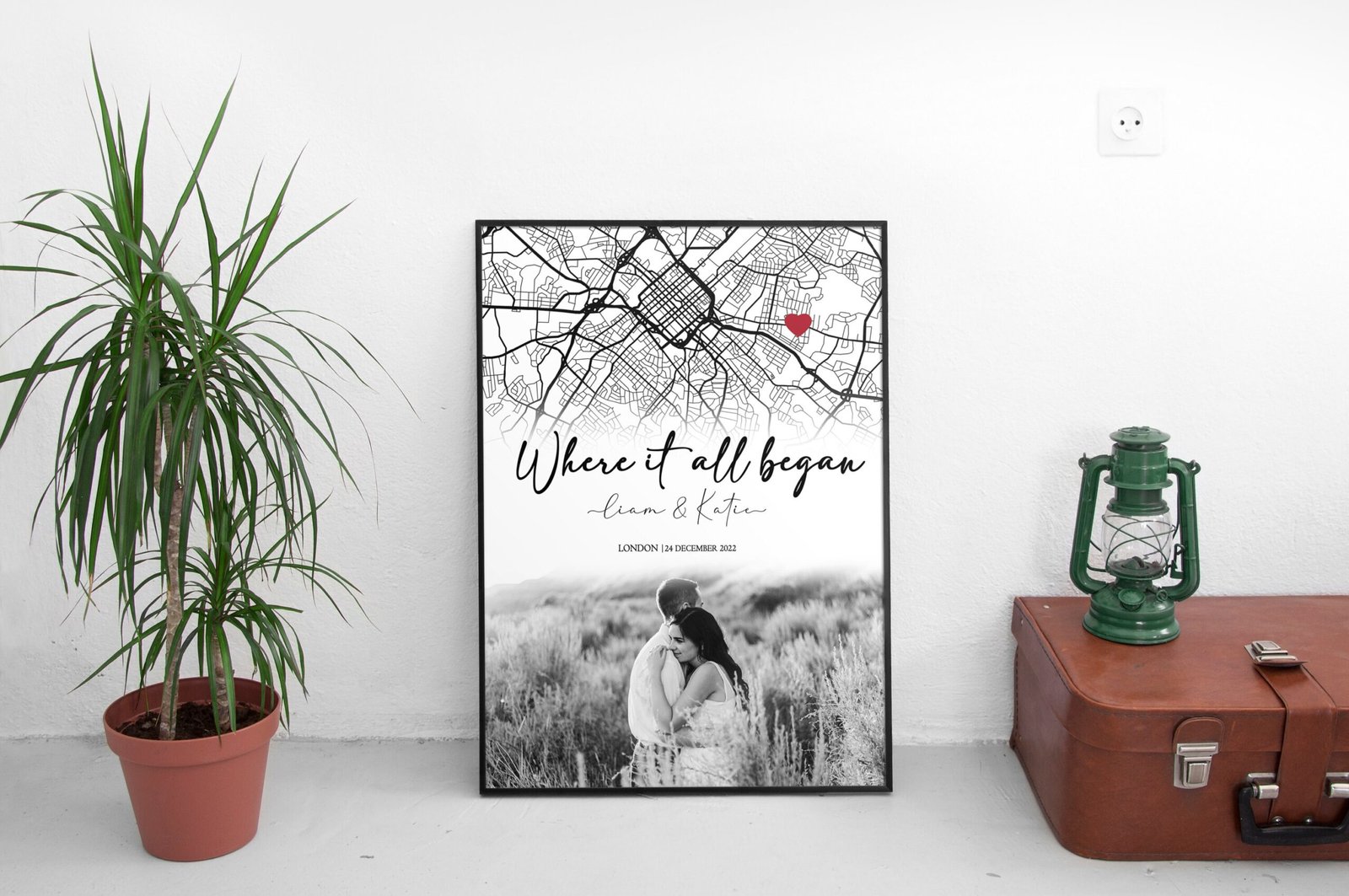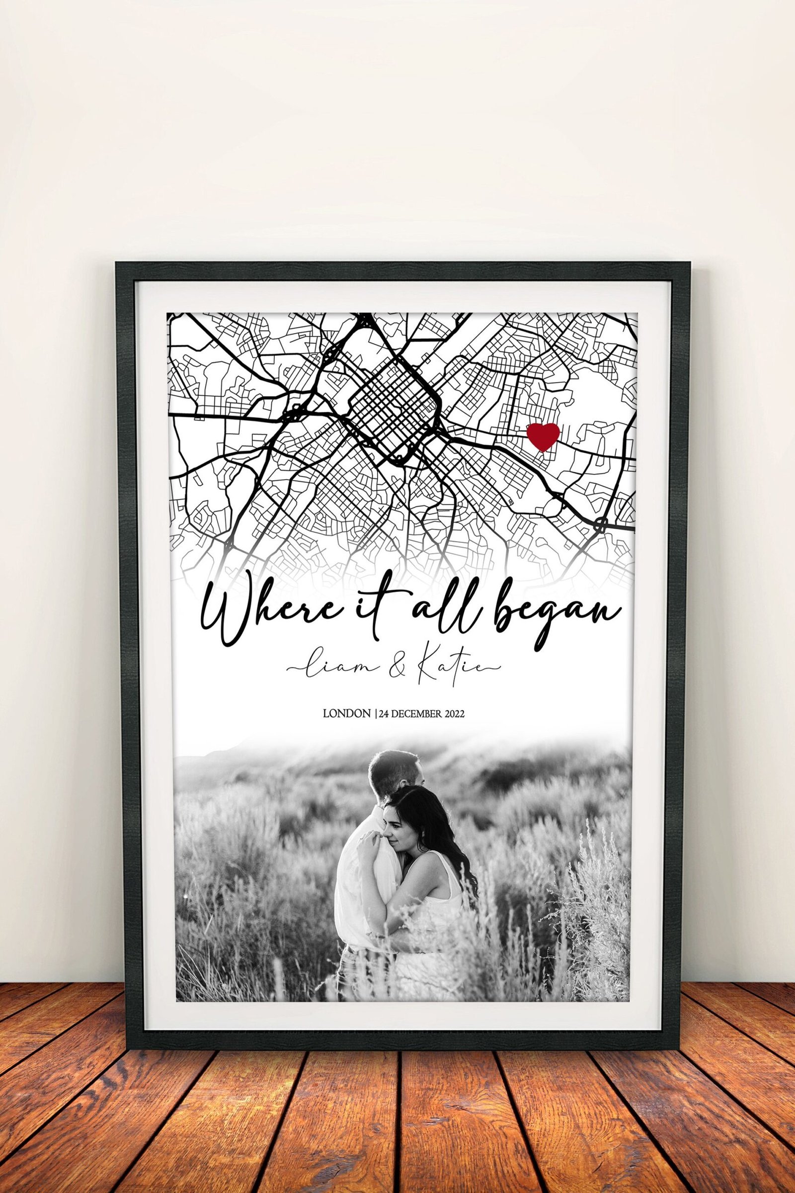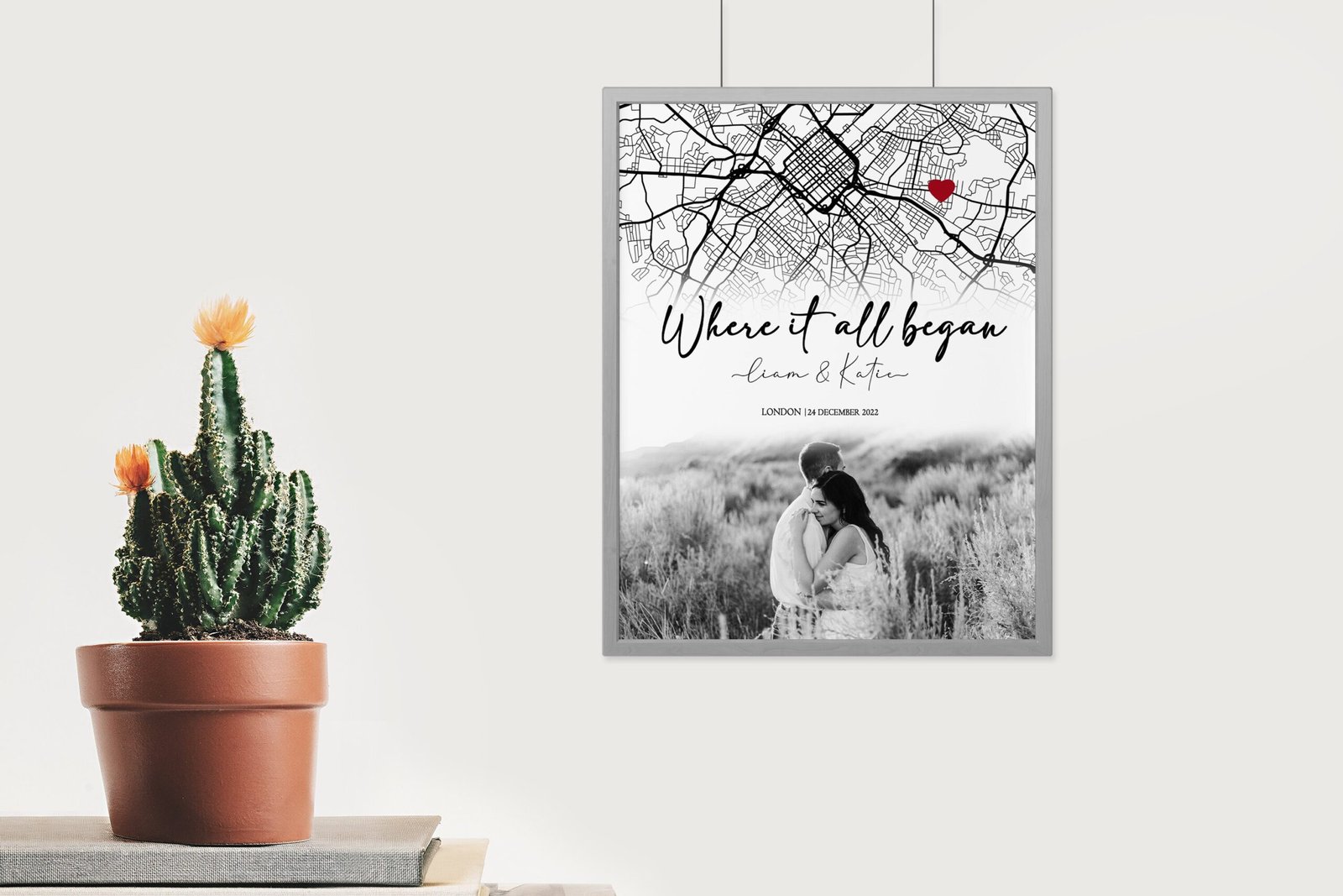 - Frameable design: The Where We Met Map is the perfect size for framing and displaying in your home as a meaningful piece of decor.